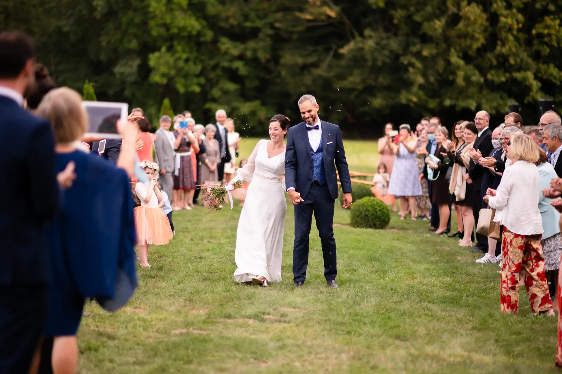 Pas question de vous enlever à vos invités pendant des heures. Une courte balade, quelques cadres à la golden hour, et on vous rend à la fête.